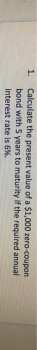 Zero Coupon Bonds - Financial Edge What is the present value of a zero coupon bond with a face value of 1000 maturing in 5 years? The current interest rate is 3%. Using the formula mentioned above gives 862.6 as the bond's present value. Calculating yield-to-maturity or expected returns.