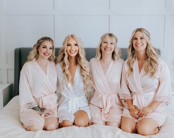 Bride Robe - Bridesmaid Robes - Bridal Robe - Silk Satin & Lace Robe - Bride Gift - Bridesmaid Gift - 10% off BULK ORDERS